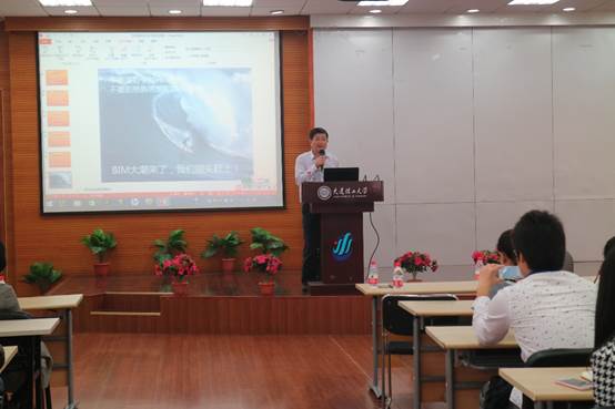 本次BIM应用强化班成立大会结束后,还开展了有关BIM在实际中应用的学术报告会。大连建筑设计研究所的程新工程师主要从设计单位的角度介绍了BIM在建筑信息模型创建、基于信息的协同工作以及参数化设计三个方面的应用。中建八局大连分公司的于洪伟工程师侧重于BIM在施工管理中有关施工工艺模拟、装配可视化、复杂技术交底,碰撞检查以及优化设计等方面,结合实际案例,配合动画进行生动形象地展示。整个报告内容充实,紧跟时代前沿,极大的调动了学生学习BIM的兴趣和报名本次BIM应用强化班的积极性。