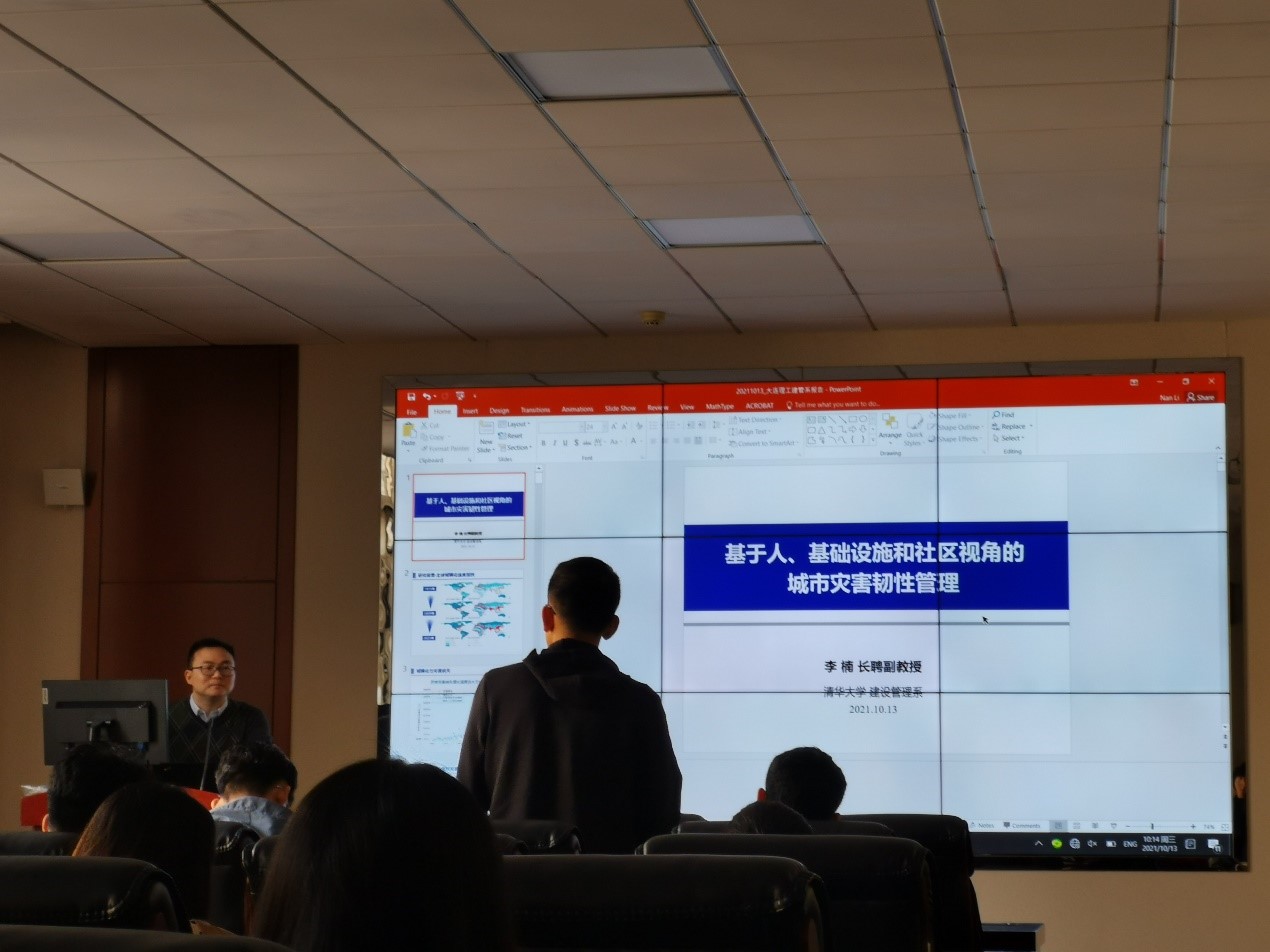 2021年10月13日,应建设管理系邀请,清华大学建设管理系长聘副教授、博士生导师,可持续城镇化研究所所长李楠老师来校就“基于人、基础设施和社区视角的城市灾害韧性管理”进行学术报告。报告会由姜韶华副教授主持,建设管理系李忠富教授等建设工程学部部分教师与人文学部公共管理系部分教师出席了本次报告会,共计四十余师生参加了报告会。