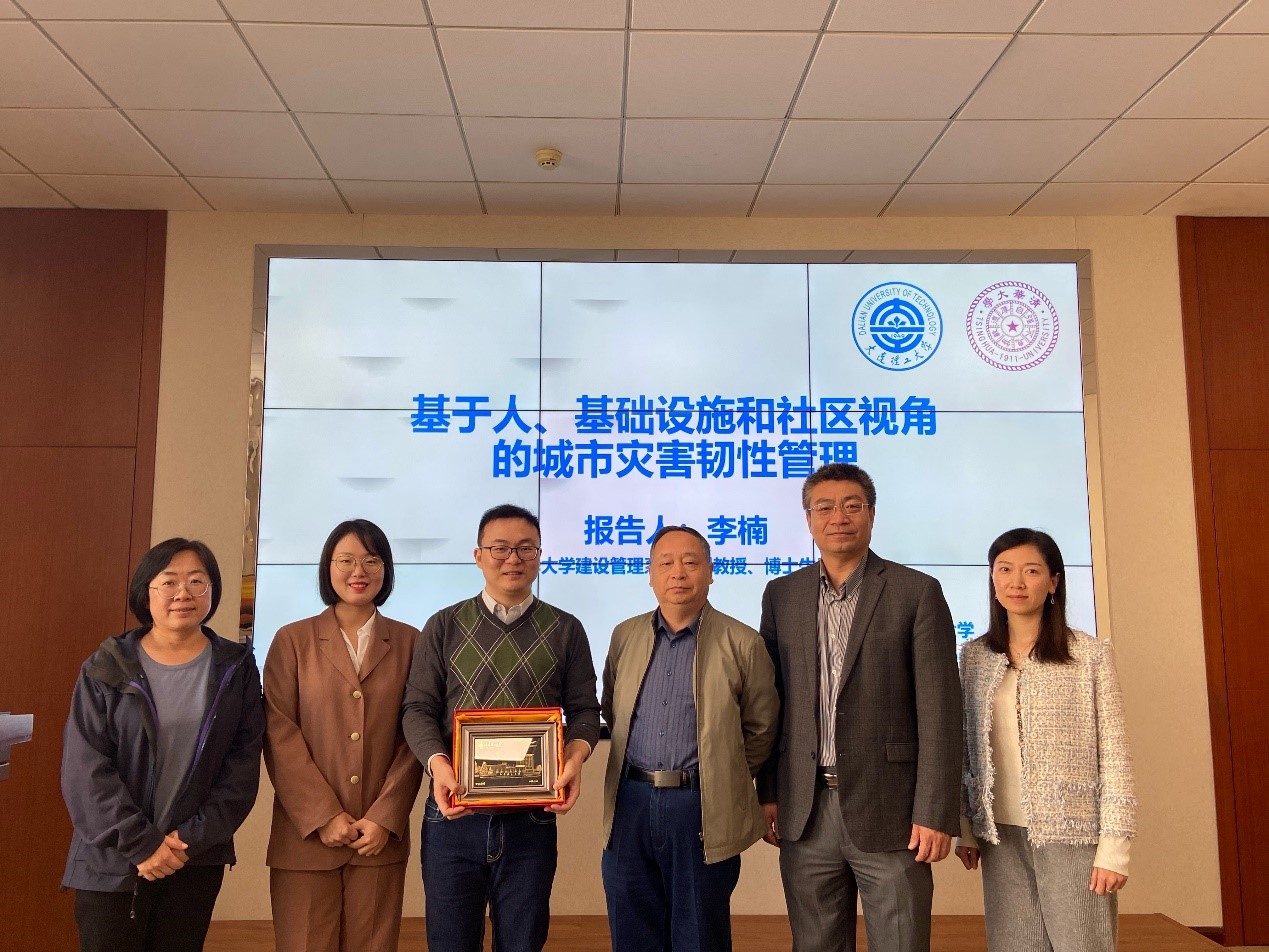 李楠老师以其丰富的理论知识与实践经验为参会师生带来了高水平的城市韧性管理前沿知识分享,拓宽了参会师生对灾害相关问题的学术视野。报告会在热烈的气氛中圆满结束,建设管理系部分参会教师与李楠老师合影留念。