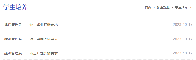 本次硕士研究生考核首次依据上述文件开展了开题与中期二答工作,答辩结果表明新修订的培养过程管理体系有效地提高了硕士研究生学位论文质量。该培养过程管理体系将结合学校和学部最新要求,持续优化完善,有效提高建设管理系研究生培养质量。