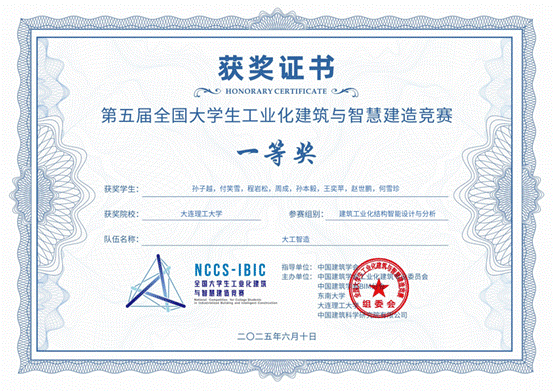 2025年6月10日,第五届全国大学生工业化建筑与智慧建造竞赛决赛暨颁奖典礼圆满落幕。建设管理系研究生孙子越、付笑雪、王奕萍、赵世鹏、何雪珍,以及建设工程学院本科生程岩松、周成、孙本毅组成的8人团队,在窦玉丹老师的精心指导下,凭借出色表现从众多参赛队伍中脱颖而出荣获全国一等奖。