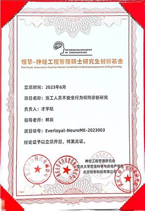 我系硕士研究生才宇航在硕士生分论坛做了题为“基于VR的施工人员不安全行为倾向诊断研究”的主题汇报,该汇报受到了评委专家的好评并获得了优秀报告奖。组委会为其颁发了恒挚-神经工程管理硕士研究生创新基金。